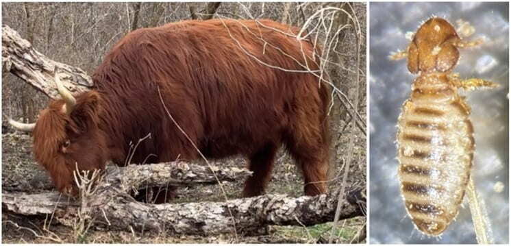 Lice are host specific, meaning that the cattle lice are not shared with sheep, pigs or horses and visa-versa, but multiple species of lice can infest the same animal. As wingless insects, lice require direct body contact to move from animal to animal.