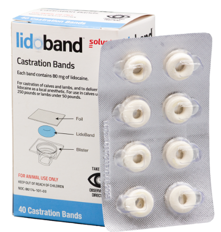 - Lidoband™ lidocaine-impregnated elastrators