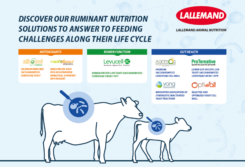 As a pioneering expert in yeast and bacteria selection and production, Lallemand Animal Nutrition offers a complete range of probiotics, prebiotics and postbiotics housing solutions to help improve ruminant efficiency and longevity. An integrated approach is crucial to help meet the challenges of ruminant farming systems and to help improve the sustainability of the way of production by increasing feed efficiency and participating to animal well-being and longevity. This is why, for Lallemand Animal Nutrition, taking the farm as a global microbial ecosystem is a key option to consider for the entire farm system.