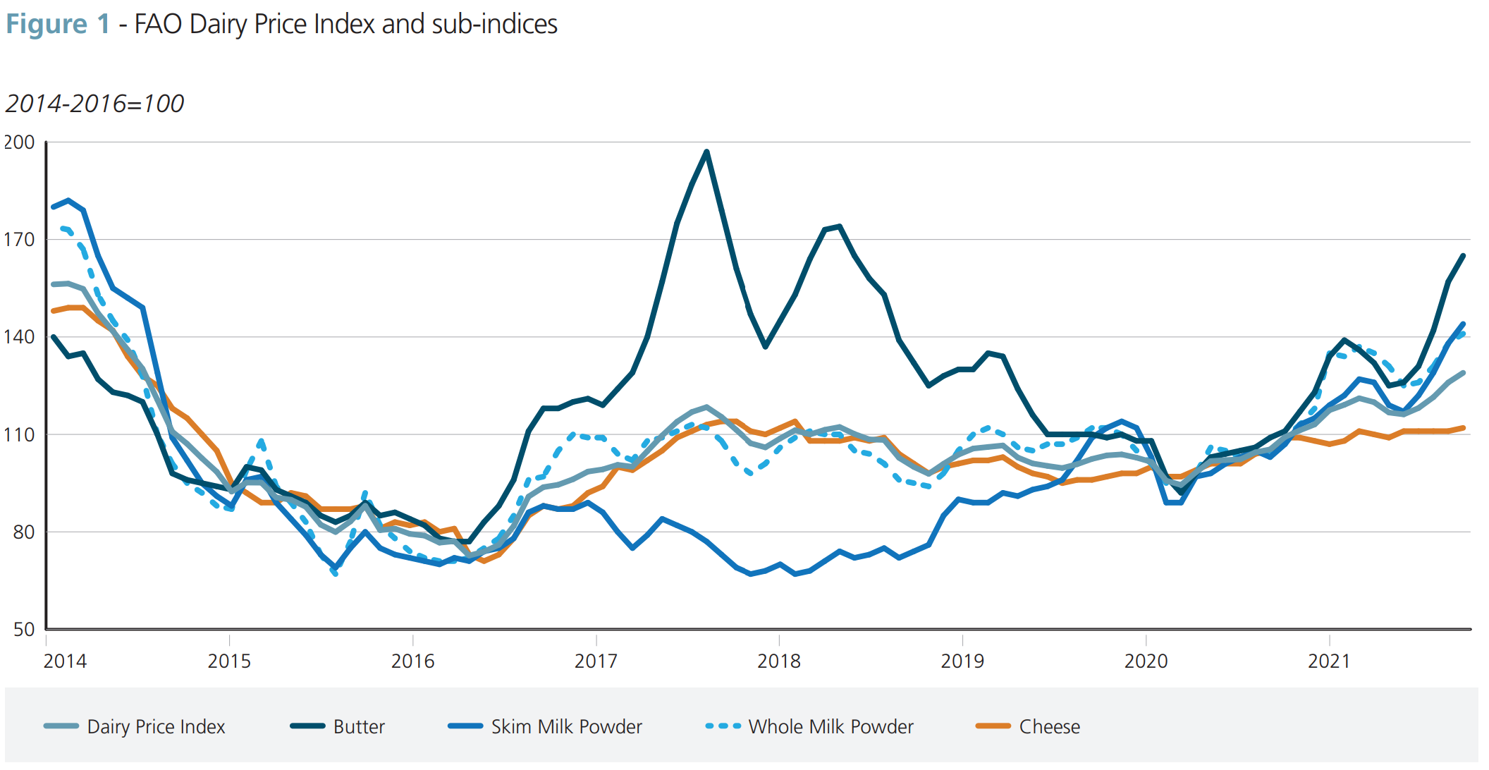 Tight global supplies amidst sustained demand drove international dairy prices steeply in 2021Editor's note: The following is an excerpt from FAO's Dairy Market Review: Overview of market policy developments 2021.