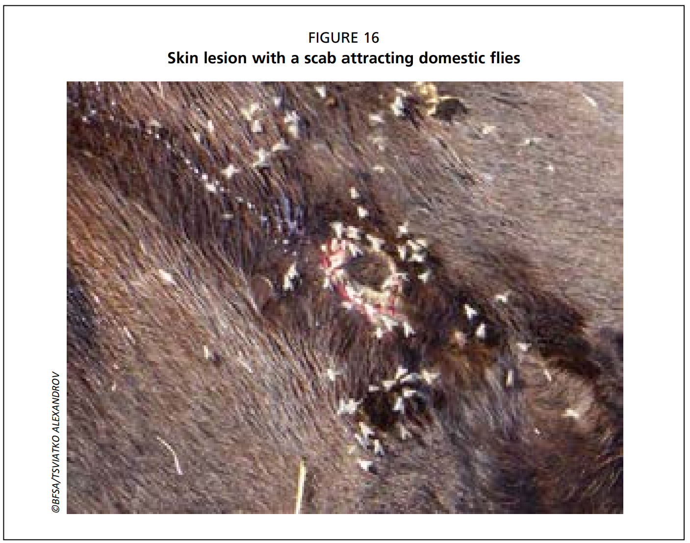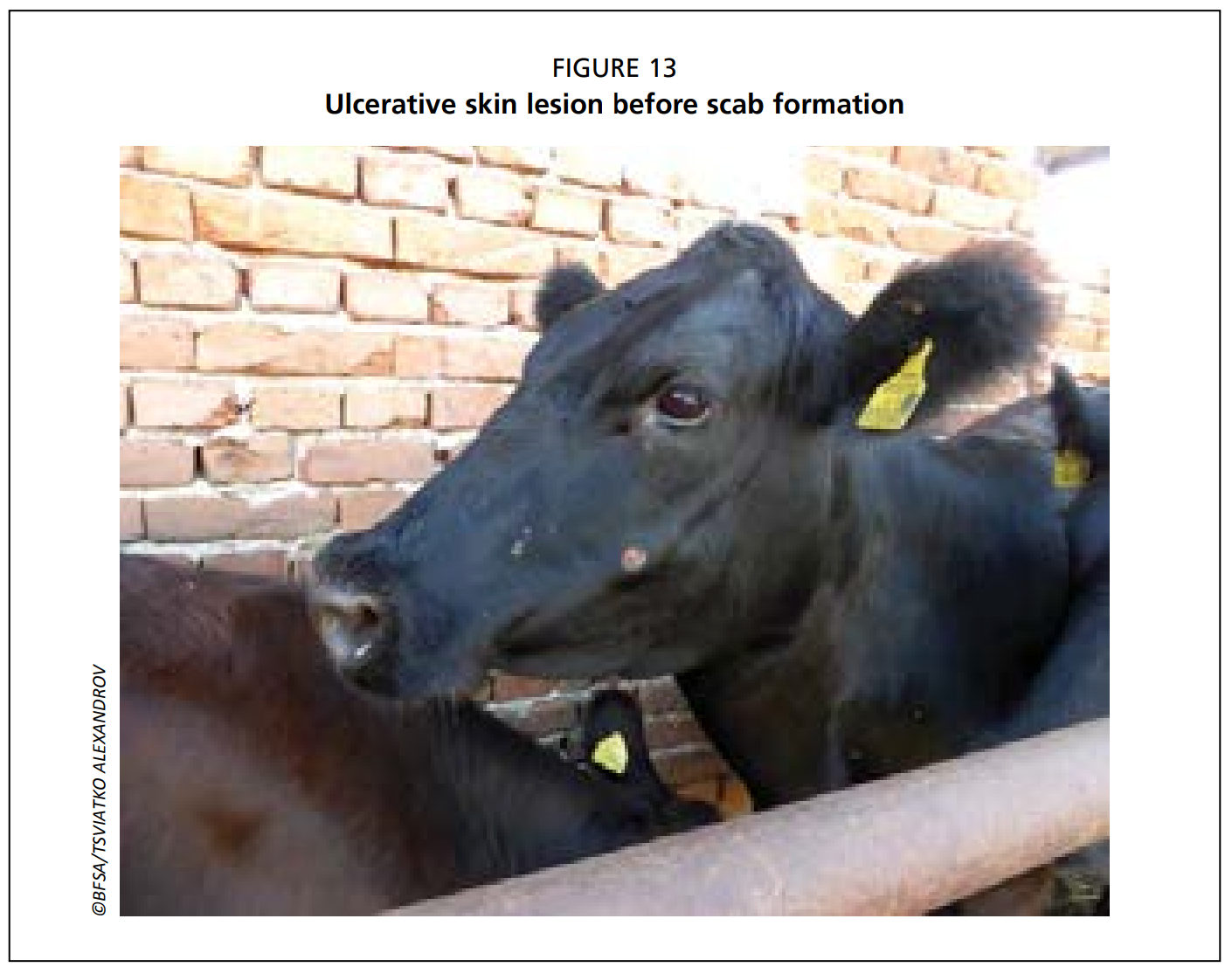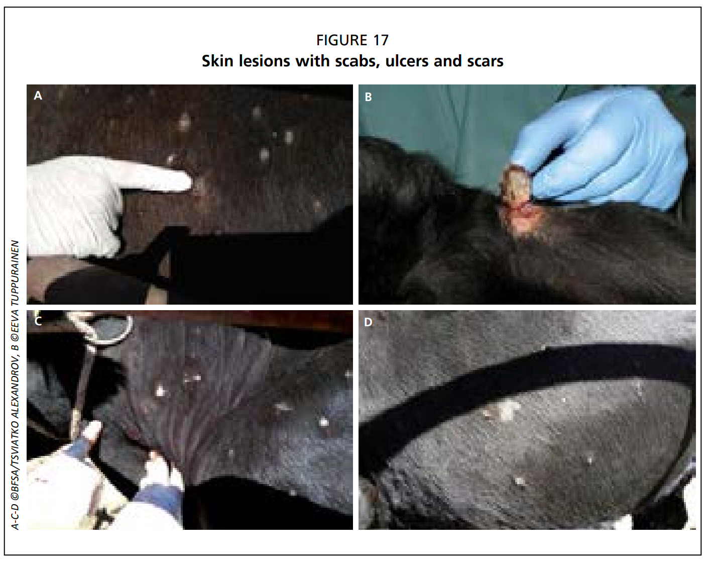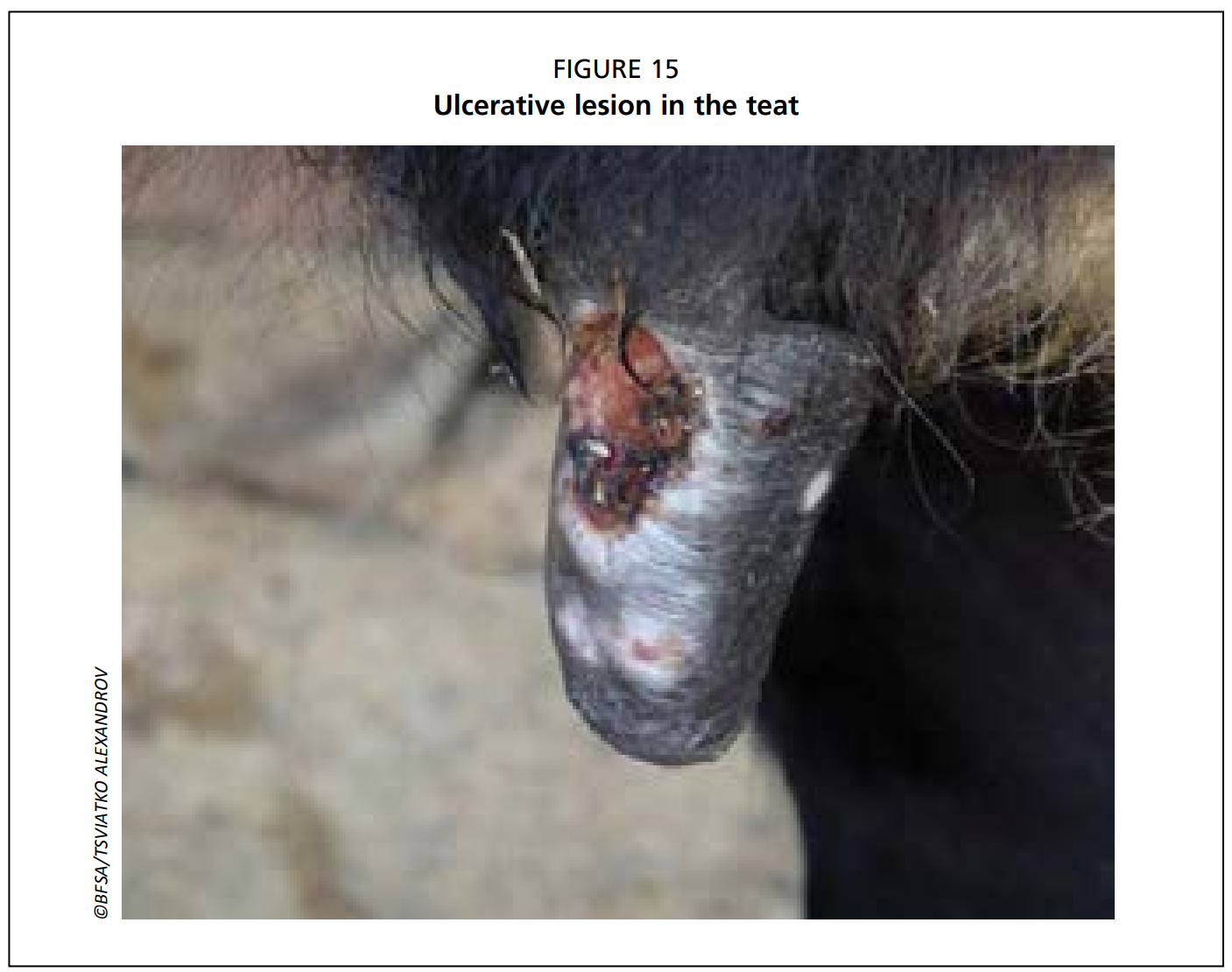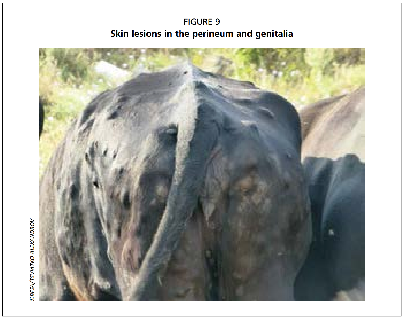 - Predilection sites are the skin of the head, neck, perineum, genitalia (Fig. 9), udder (Figs. 14 & 15) and limbs.