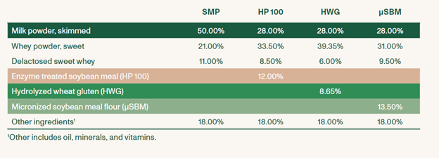 - SMP partially replaced by enzyme-treated soybean meal (HP 100)