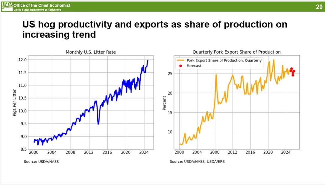 During and shortly after COVID, Meyer said the US industry saw a fall in pigs per litter.