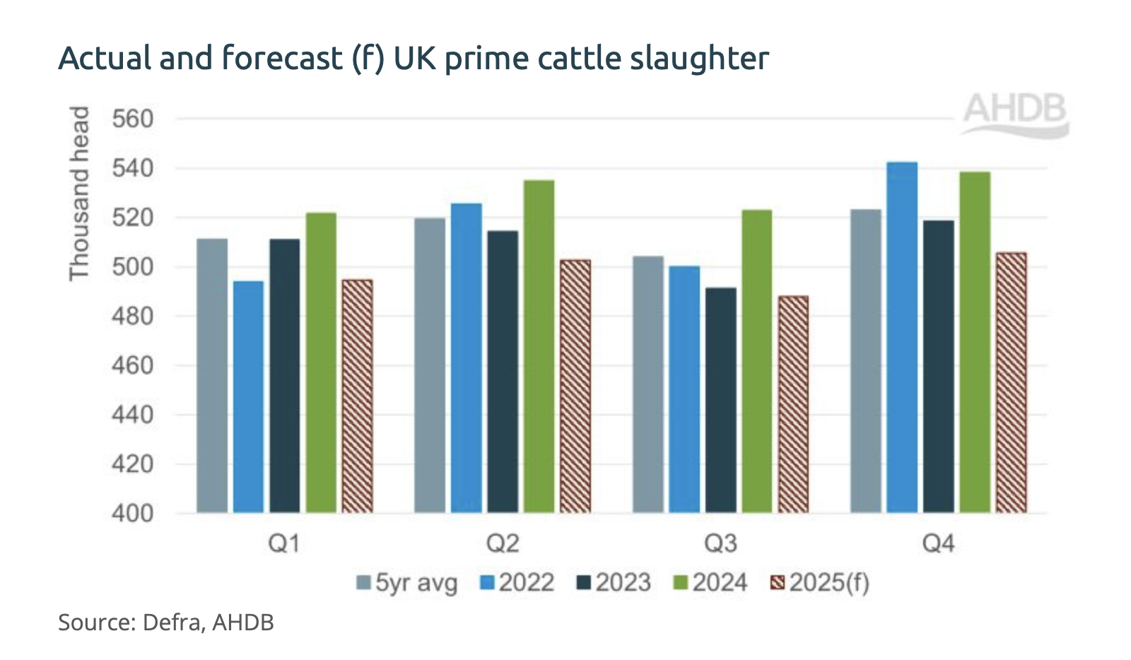 As such, cow slaughter in 2025 is forecast to fall by 2% (15,000 head) from 2024 to 608,000 head.